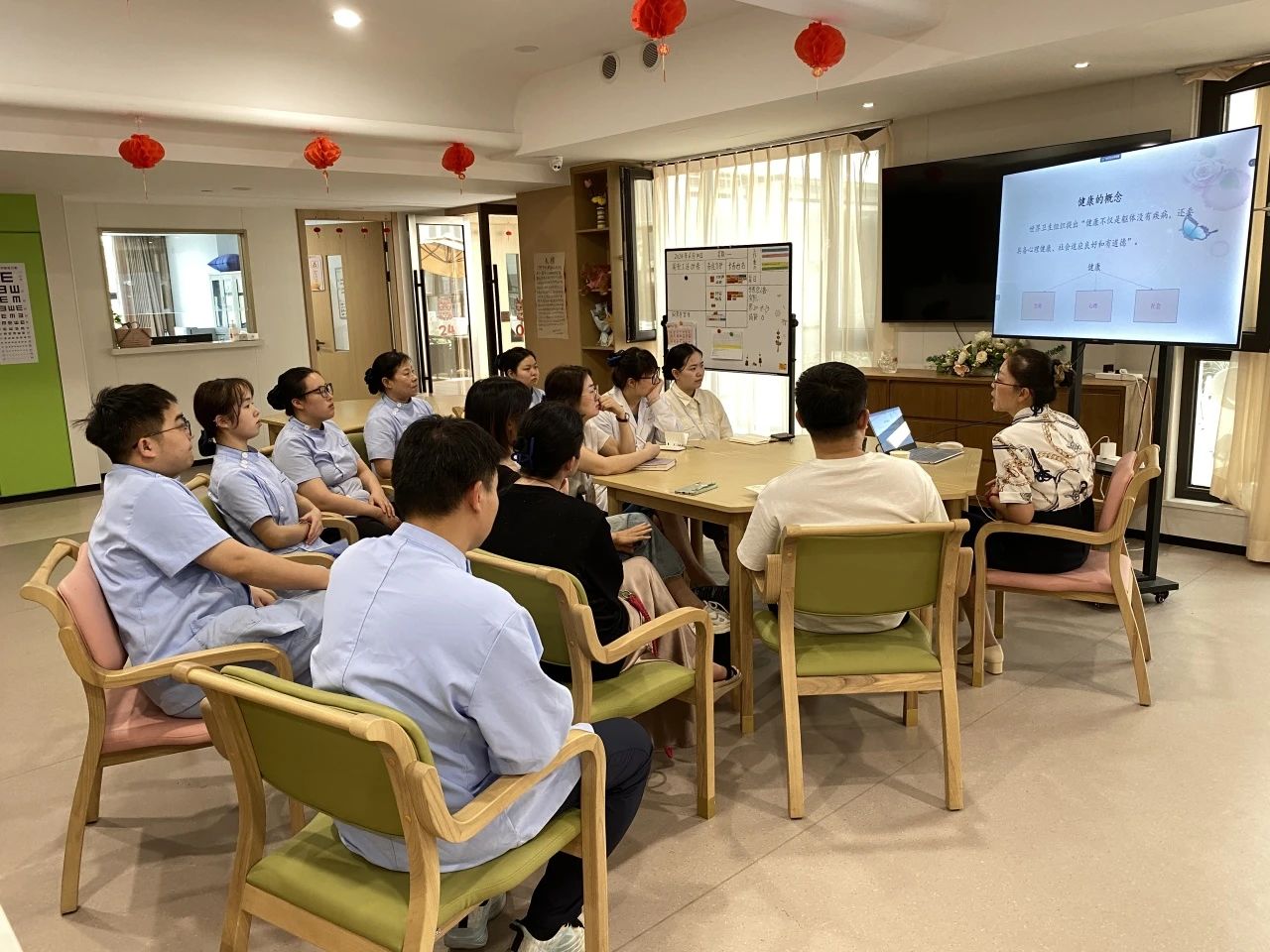 今年6月是全国首个全民健康素养宣传月,主题是“提素养 促健康”。为积极响应国家卫生健康委关于《中国公民健康素养-基本知识与技能(2024年版)》文件精神,进一步推动卫生健康工作从“以治病为中心”向“以健康为中心”转变,不断提升居民的健康知识和技能,促进养成健康行为,6月24日,康源养老组织各业务线一线工作人员、入住老人开展了“心理健康自我评估与调节”主题的心理辅导培训和疏导,由来自康源养老·西安雁塔护理院的内科医师、国家二级心理咨询师汪玲霞,通过线上+线下融合的形式进行培训。