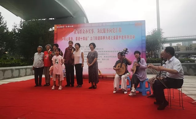 早上不一会儿,小小的早市就座无虚席、人声鼎沸,并在悠扬的乐声中拉开了序幕。志愿者们每天训练的细心沉淀,将成果近乎完美的呈现在观众的面前,“看,老师们的太极打的真好呀!”许多爷爷奶奶看见太极表演都临时起意随之附和了起来,舞蹈、太极扇、小合唱等精彩节目不停,激发了一阵阵高潮,特别是《军民鱼水情》、《长征》等经典京剧轮番上台让大家感受到了国粹的魅力,全场气氛高涨。同时现场还有口腔咨询、法律咨询、爱心理发、养老服务咨询、惠民产品等便民服务提供,将居民需要的专业服务送到身边。